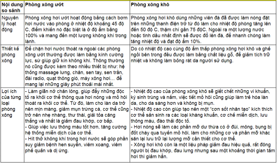 tác dụng của từng loại phòng xông hơi