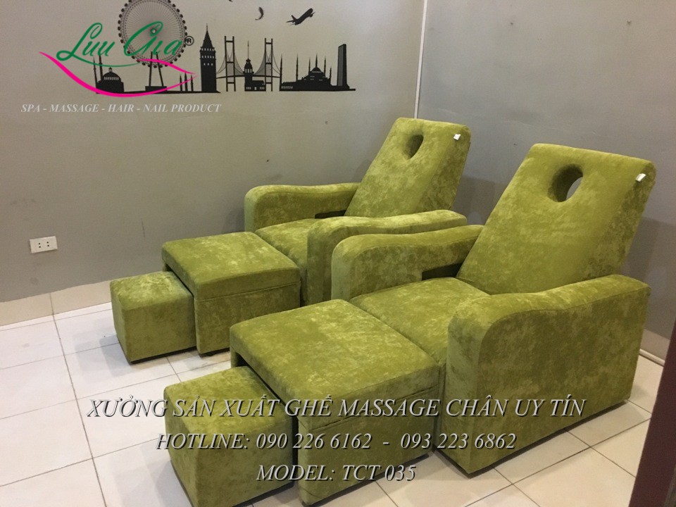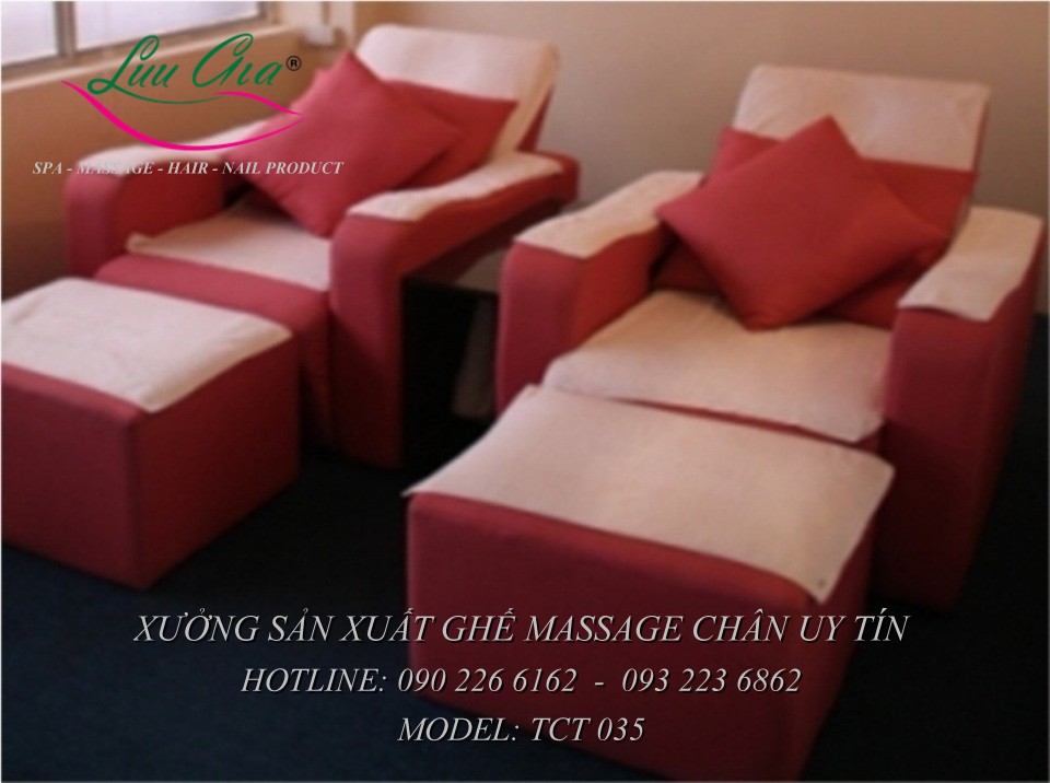 Tại Nội thất spa Lưu Gia, chúng tôi cũng chuyên sản xuất và cung cấp ghế ngồi massage chân, trong đó có mẫu ghế massage chân TCT 035 đảm bảo phù hợp với nhiều không gian thiết kế của các spa, nghỉ dưỡng, trung tâm chăm sóc sức khỏe,...Lưu Gia là cơ sở đã có nhiều năm kinh nghiệm phân phối ghế massage chân trên toàn quốc nên khách hàng có thể yên tâm chọn mua sản phẩm của chúng tôi.